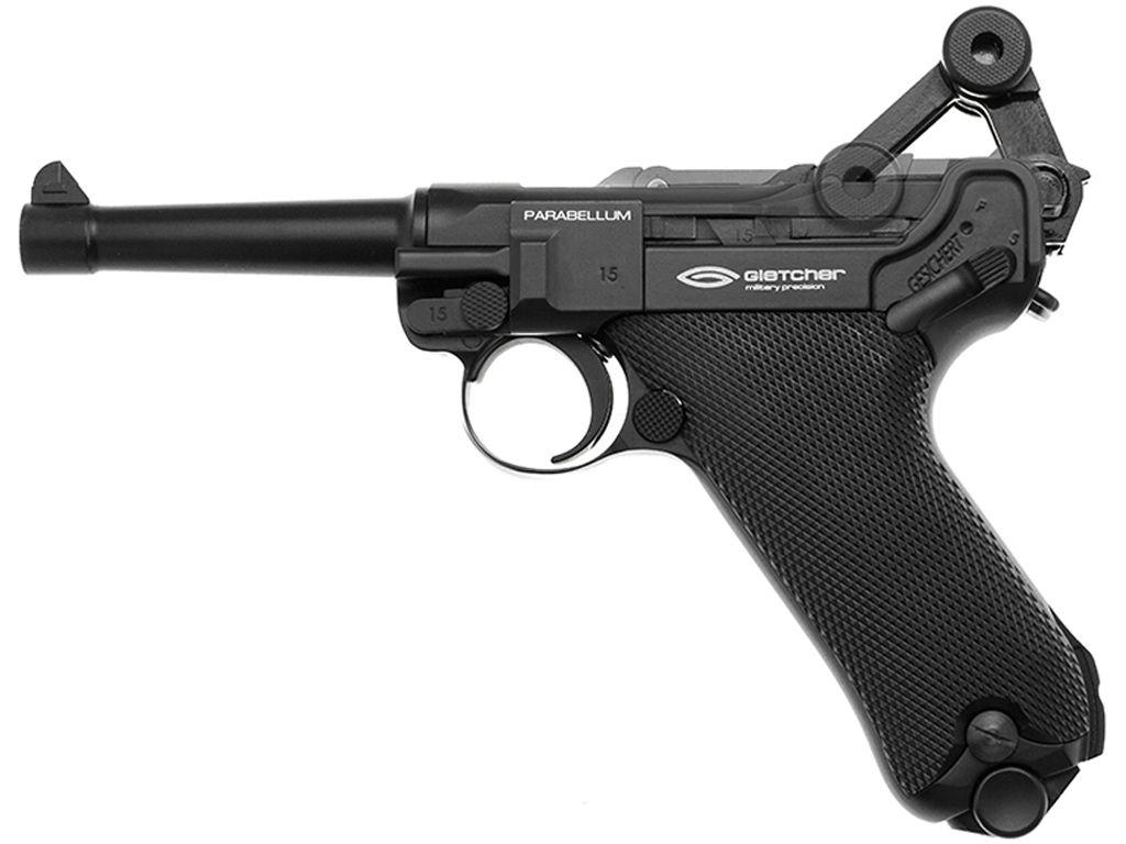 The Gletcher Parabellum Air Pistol is an advanced premium air version. It features a breechblock lever system with Blowback, and a functioning bolt hold-open device , a full-size magazine, and a light trigger pull. Once the magazine is loaded, the CO2 cartridge is installed and the magazine inserted into its well, you pull back the toggle to load the first round into the chamber. This is the perfect CO2 Air pistol for you.