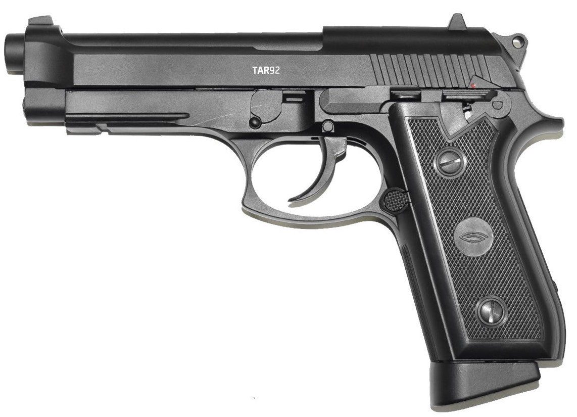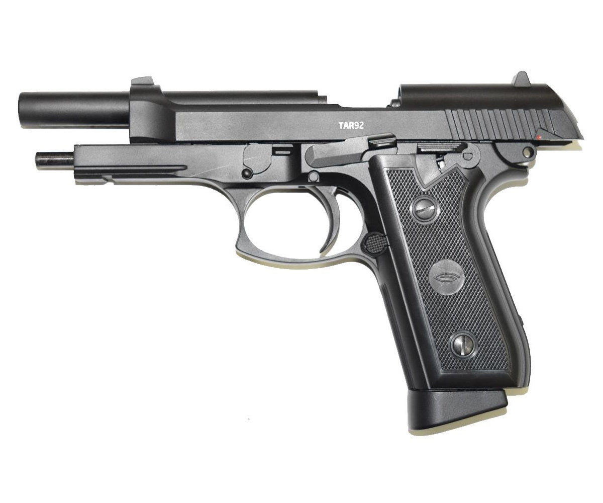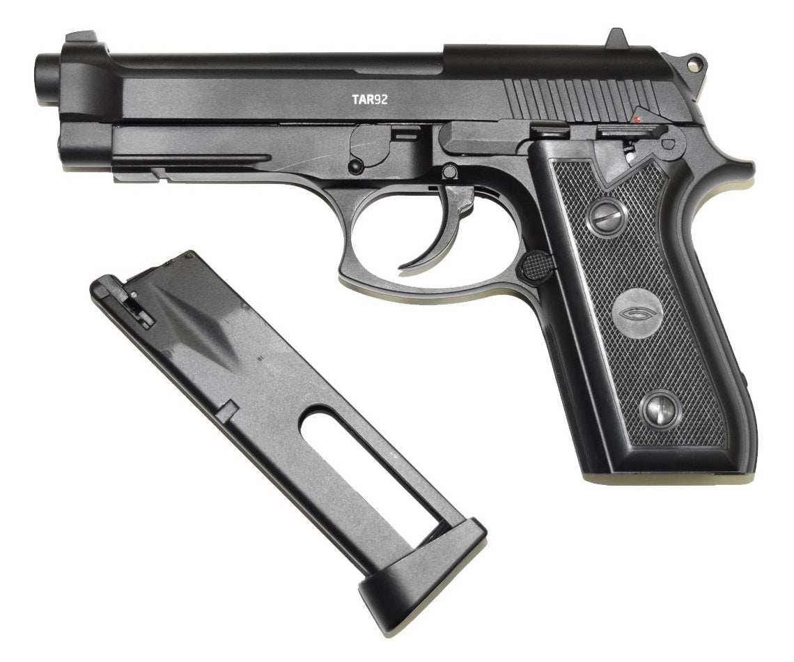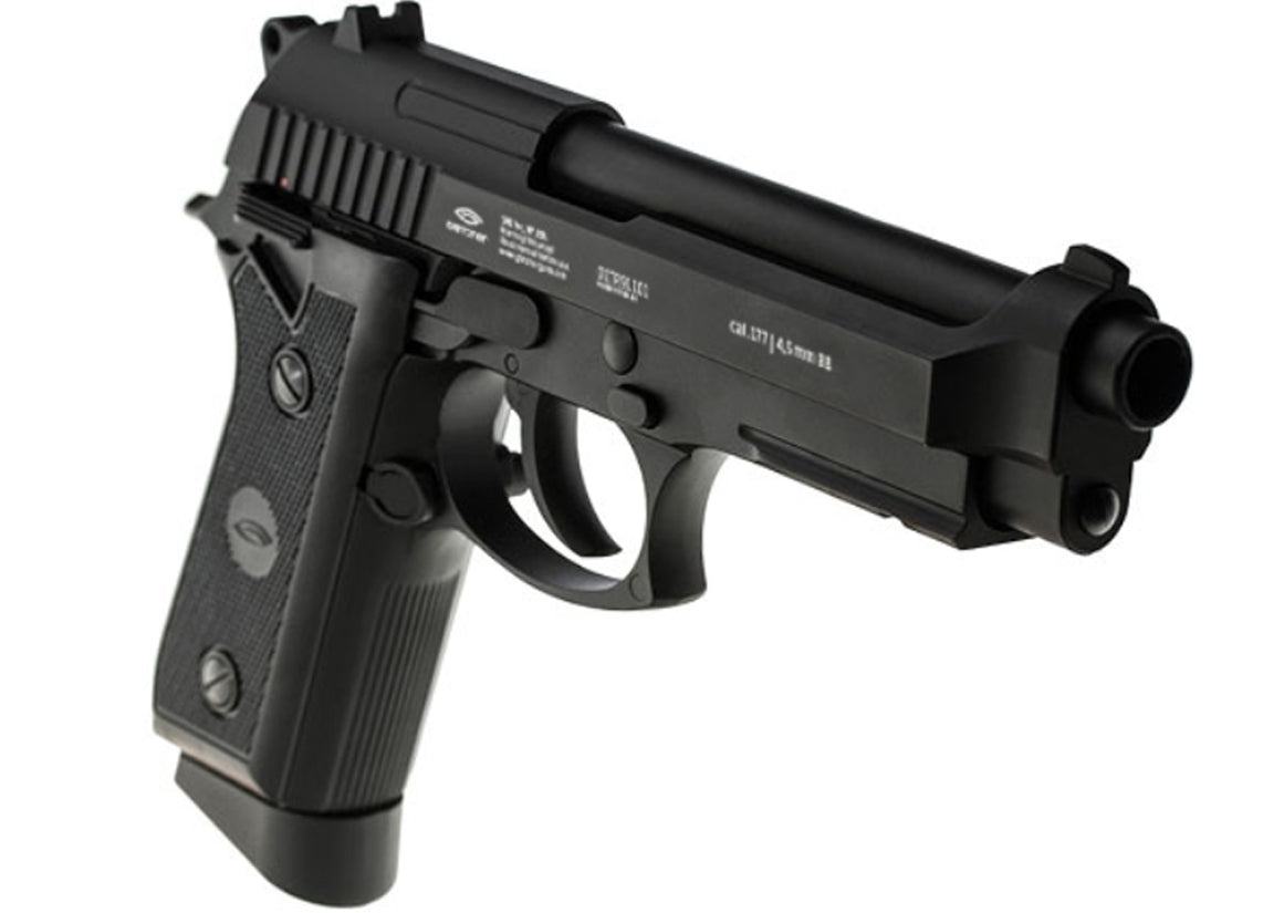 As technology and innovation advance, human ingenuity will find ways to improve even timeless classics. This model includes a hidden CO2 cartridge tightening screw. This Air pistol is equipped with a double-action trigger mechanism. With Double-action Air pistols, the trigger performs two functions, cocking the Air gun and loading the round. This speeds up the firing process, but increases the force required to press the trigger. A soft trigger pull may be achieved by first cocking the hammer. This is the perfect CO2 Air pistol for you.