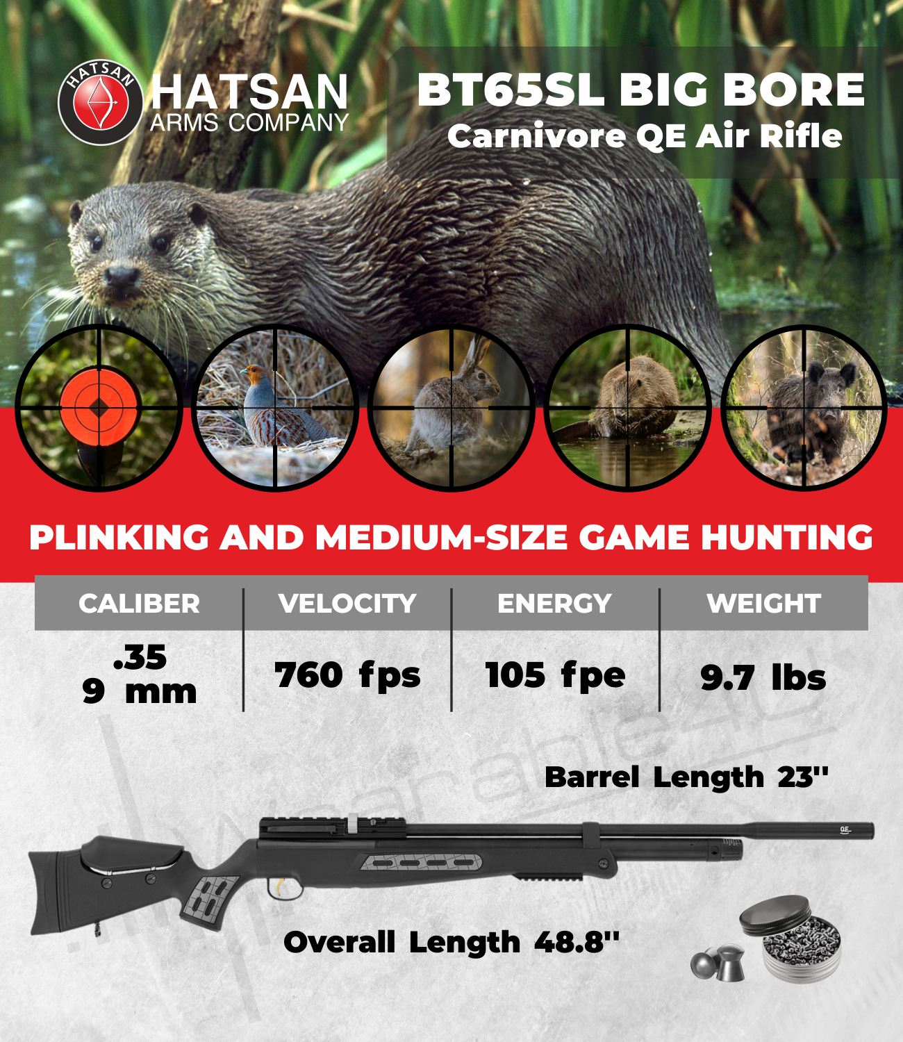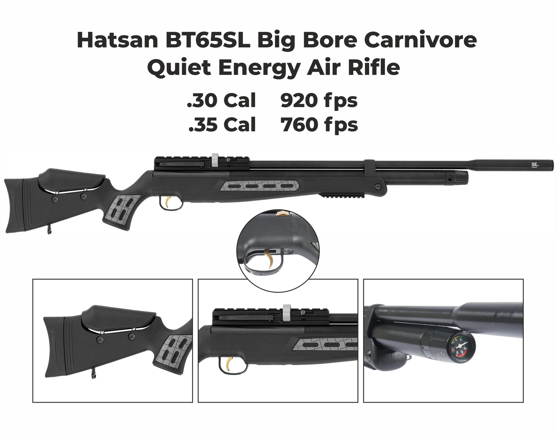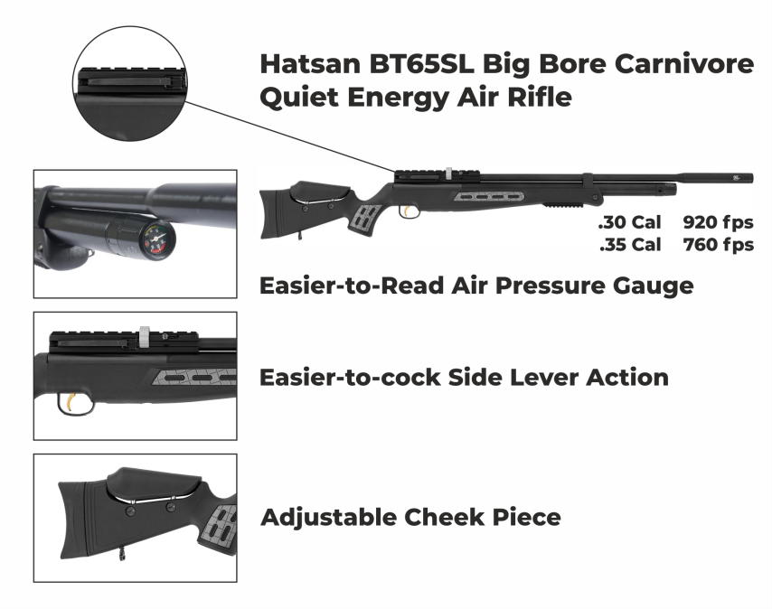 Hatsan BT65SL Quiet Energy Big Bore Carnivore .35 Cal Air Rifle Specifications