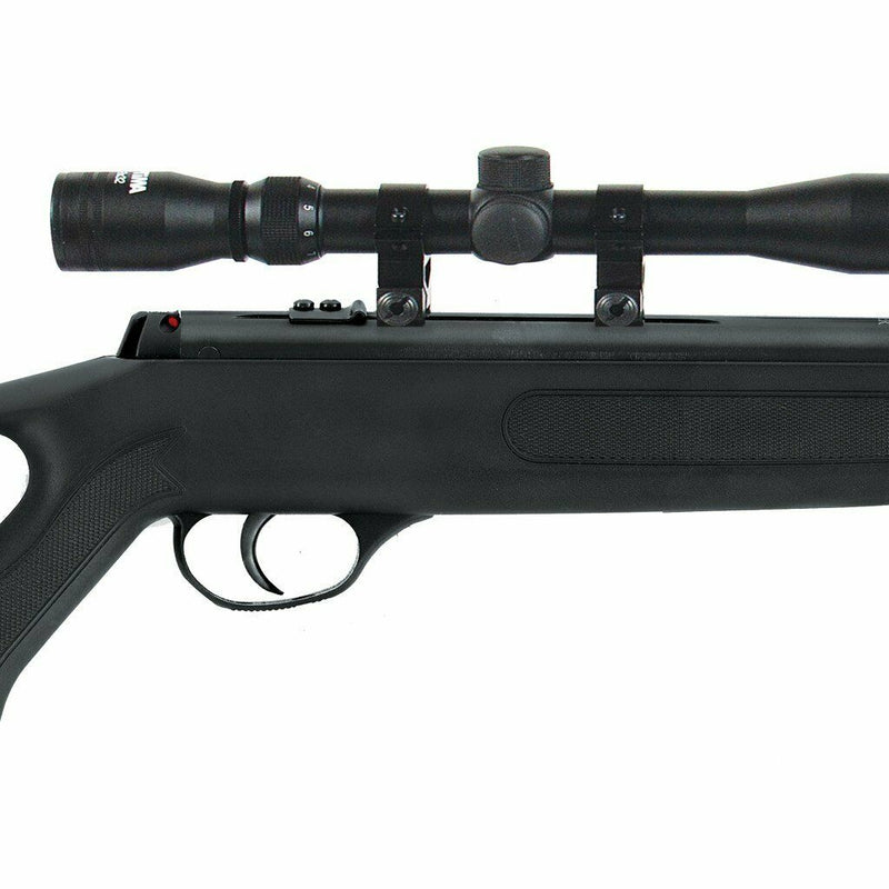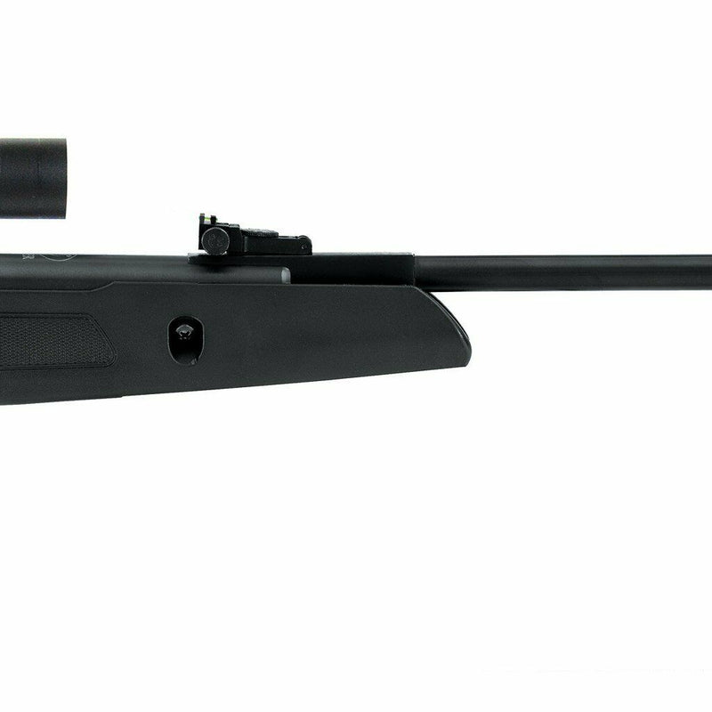 Offered at an easily affordable price, the Hatsan Edge Spring Air Rifle with Scope Combo. The Edge Spring Air Rifle stands as a great entry-level Air rifle with solid features. The all-weather, ambidextrous, polymer stock features a thumb-hole grip and a soft rubber butt pad for aiming comfort. It comes with a micro-adjustable rear sight with TRUGLO green fiber optics and the front muzzle brake delivers a hood around a red TRUGLO fiber. The Air rifle's receiver boasts integrated dovetail grooves and a mounted steel scope stop that creates a rock-solid place to put the rifle scope. For precise shooting, the Hatsan Edge Spring Air gun and scope combo includes an Optima 3-9x32mm Air rifle scope with dovetail rings.