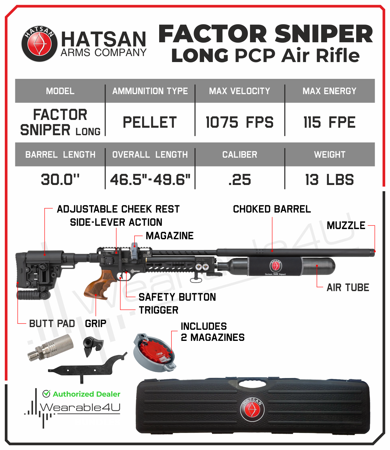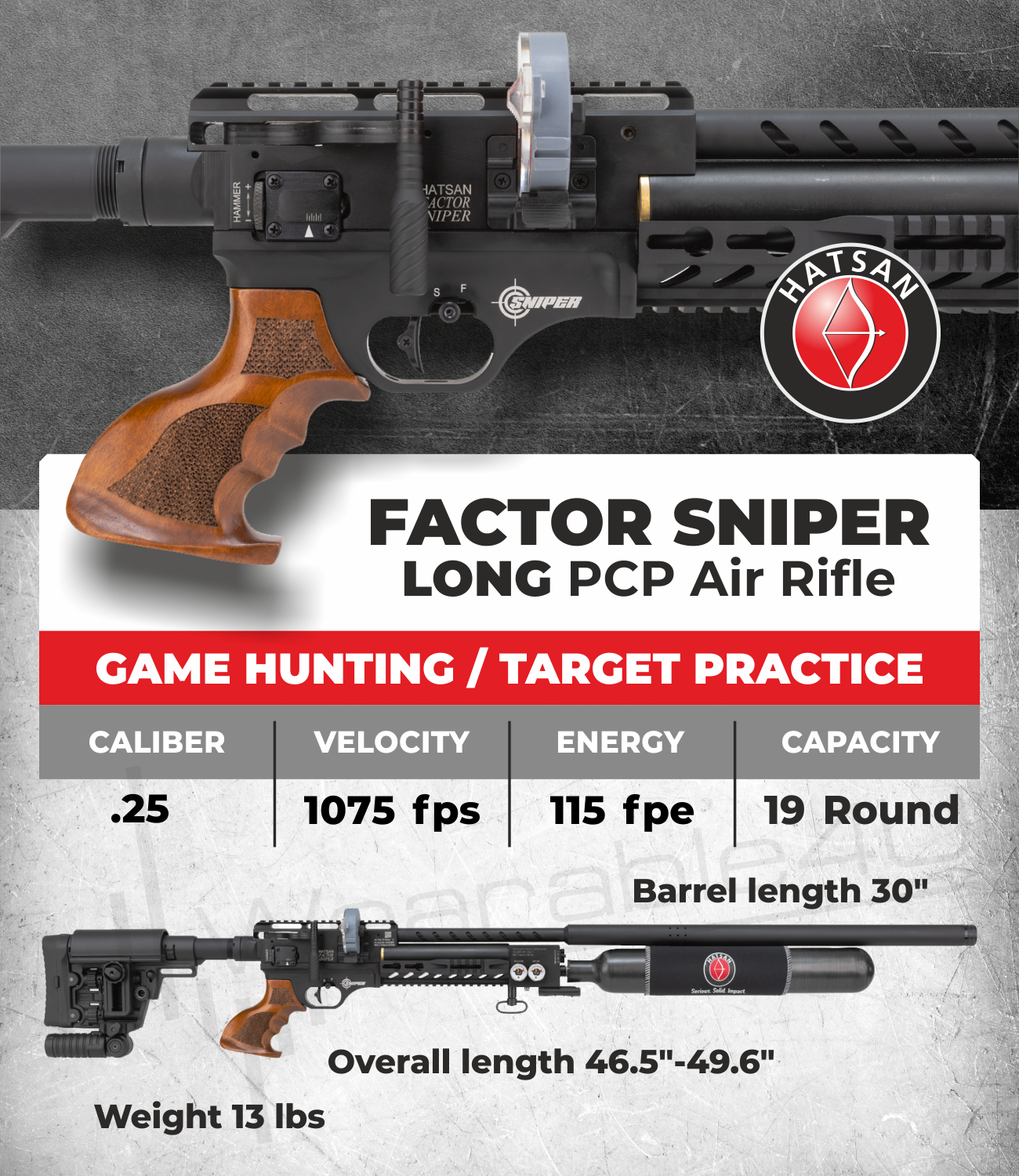 Hatsan Factor Sniper Long .25 Caliber PCP Side-Lever Air Rifle (HGFactorSniper-L25) Specifications: