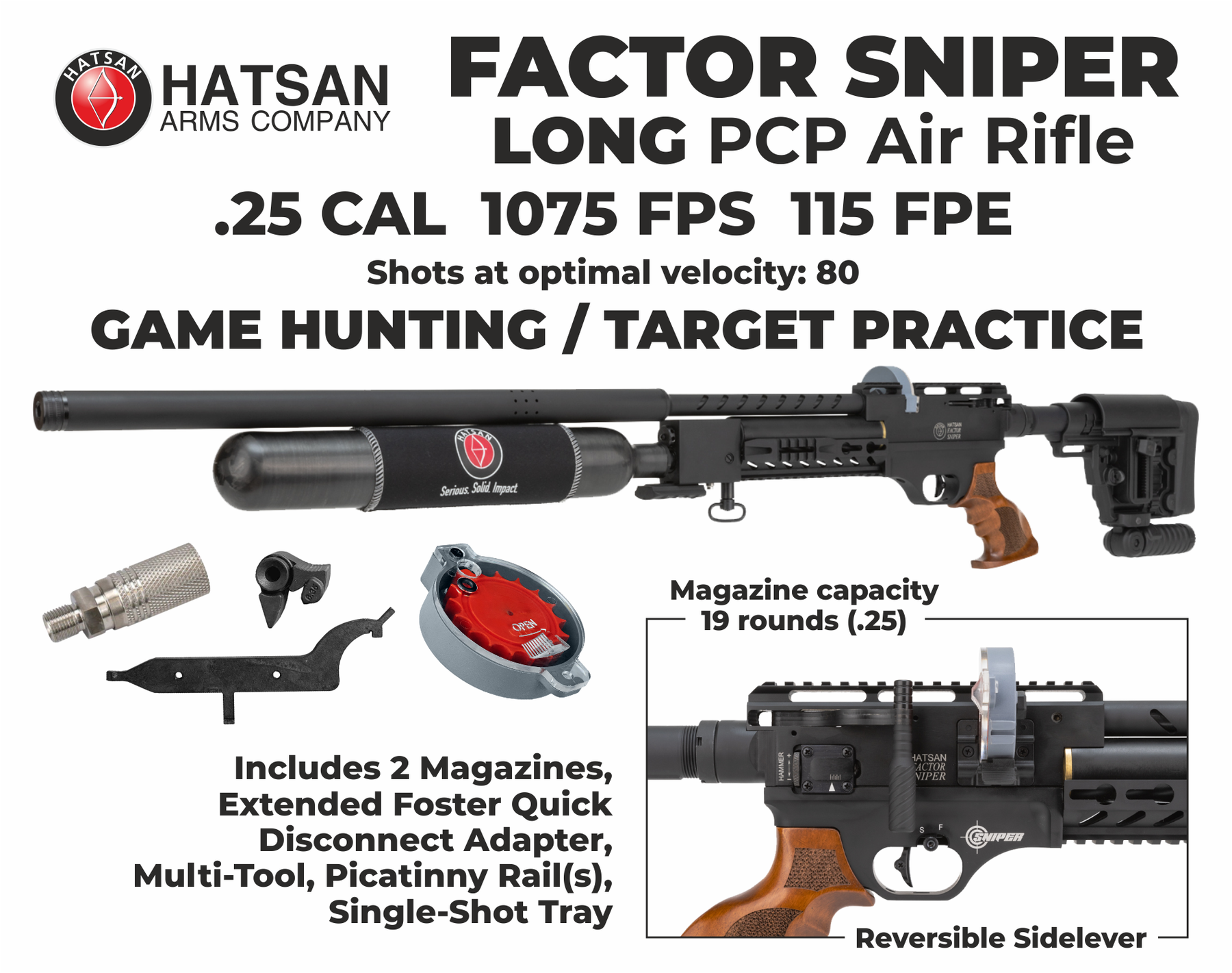 In The Box Hatsan Factor Sniper Long .25 Caliber PCP Side-Lever Air Rifle (HGFactorSniper-L25) (Bundle Options Available. Choose Your Bundle Option):