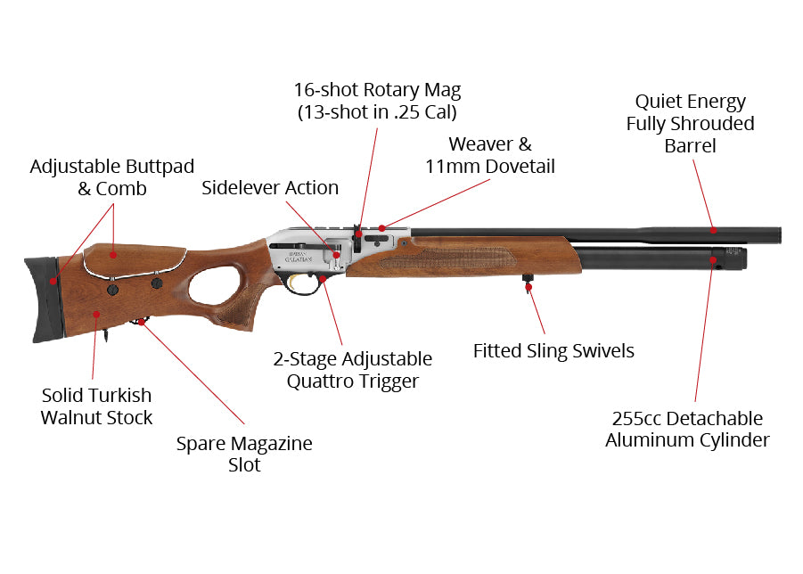 Hatsan Galatian Walnut QE .177 Caliber Air Rifle Specifications