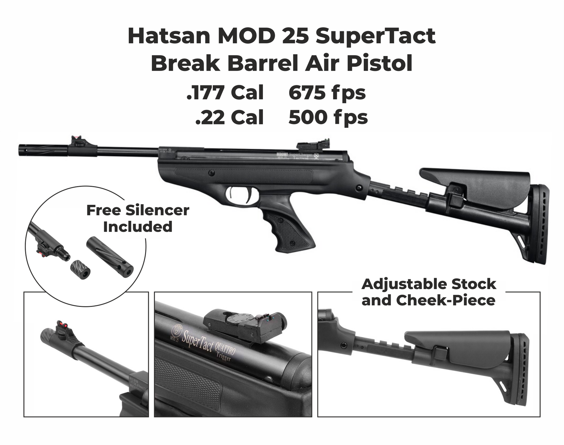 Hatsan Mod 25 Spring Piston SuperTact .177 Cal AirPistol Specifications