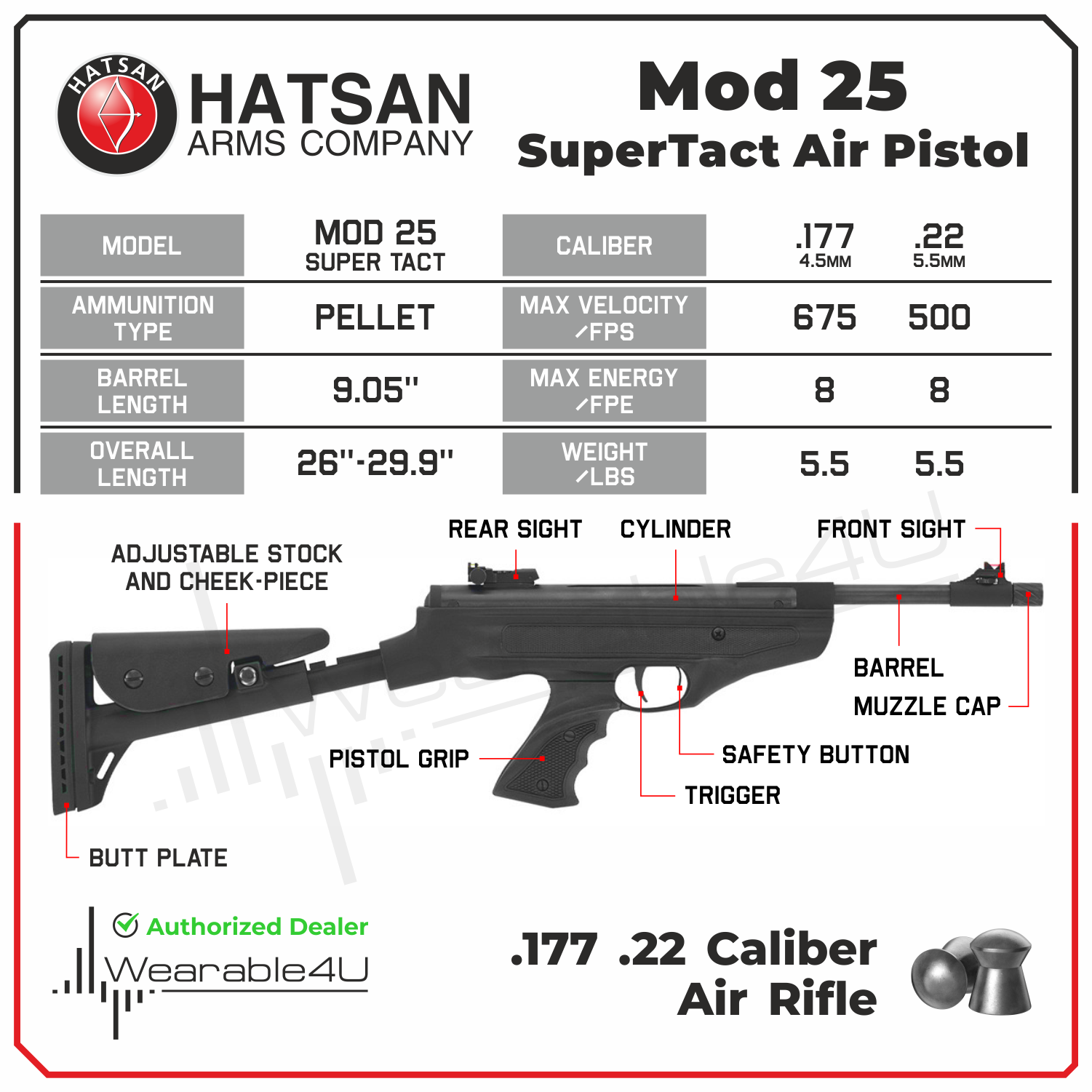 Hatsan Mod 25 Spring Piston SuperTact .177 Cal AirPistol Specifications