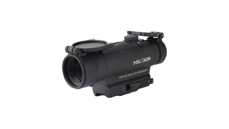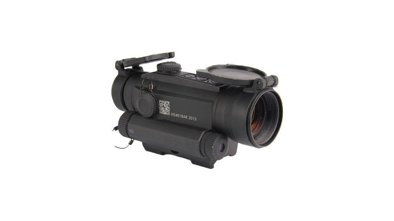 The HS401G5 is a 30 mm Tube Red Dot optic. Featuring a 2 MOA dot and an integrated green laser, this optic is rugged and versatile. The HS401G5 includes flip-up caps.