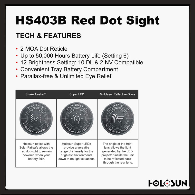 Holosun HS403B Micro Red Dot Optic (2 MOA) Sight Specifications: