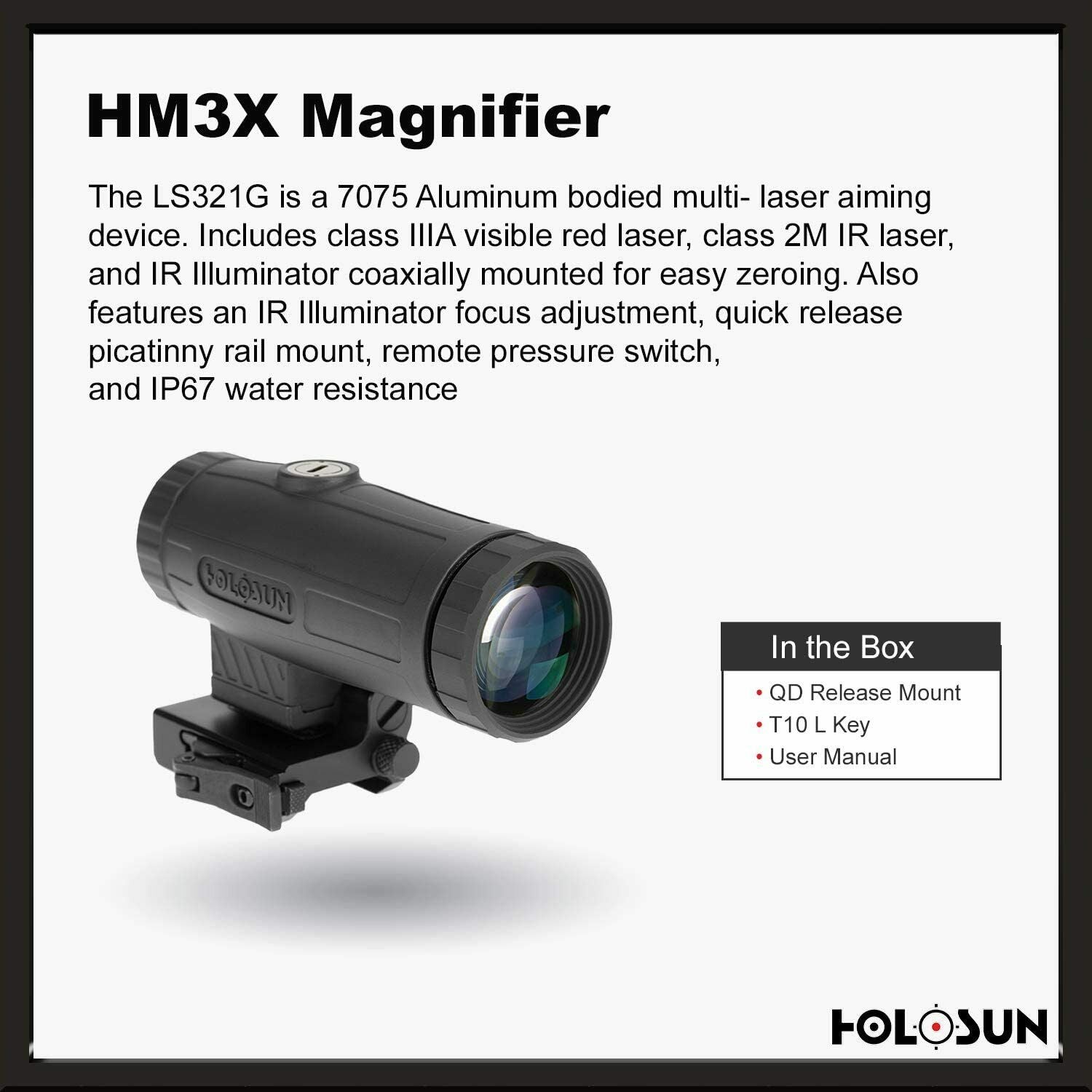 Holosun HM3X 3x Mangifier Flip to Side With Quick Detach QD Mount Specifications: