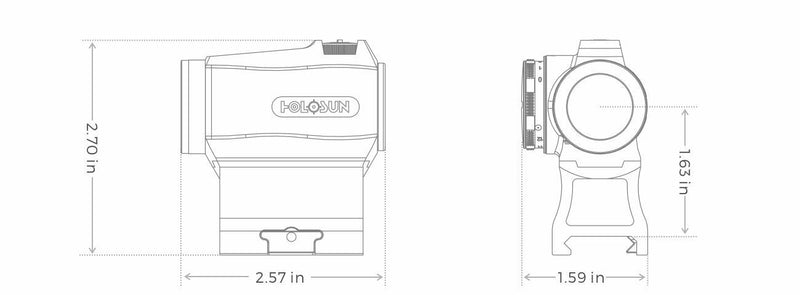 The HS403R is a 20mm micro sight. HS403R features a Rotary switch to select reticle intensity, Holosun’s Red Super LED with 50k hour battery life, and a 2MOA dot with 10 daylight and 2 night vision compatible reticle intensity settings. HS403R housing is made from durable cast aluminum and includes both a lower 1/3 co-witness mount (1.63”) and a low mount (.75”). Additional features include rubber lens covers, and a battery compartment integrated into the Rotary switch for the 2032 battery. HS403R is a versatile sight for users of all levels.