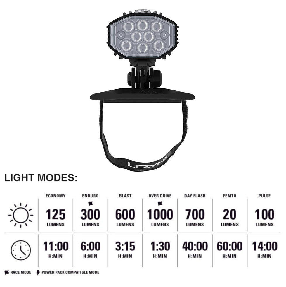 Lezyne Helmet Micro Drive Pro 1000+ Bicycle Front Light (1-LED-25H-V337) Specifications: