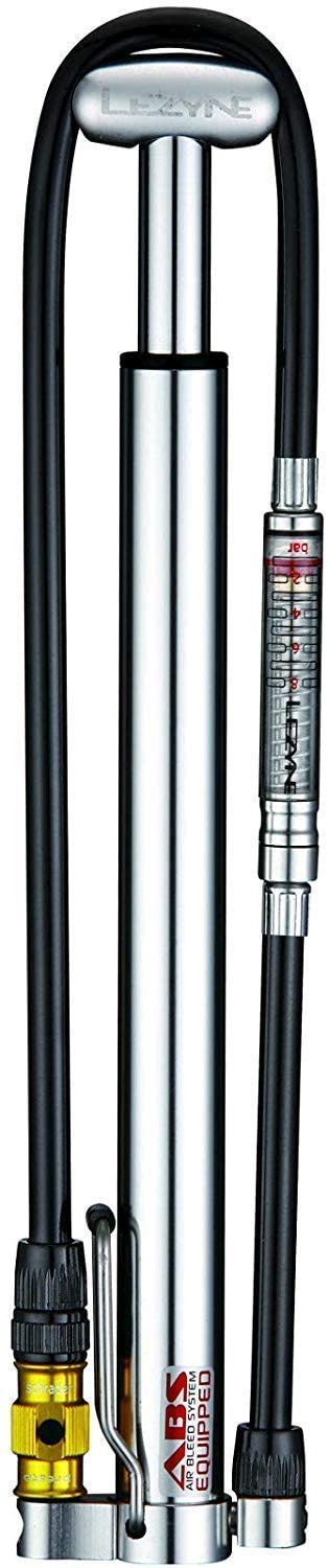 Floor pump efficiency in a super compact, hand pump size. Lightweight CNC machined aluminum barrel, piston, base, and T-handle optimized for high pressure applications. Stainless steel foot peg stabilizes pump during use. HPG version features integrated pressure gauge. ABS Flip-Thread Chuck equipped. Includes composite matrix frame mount.