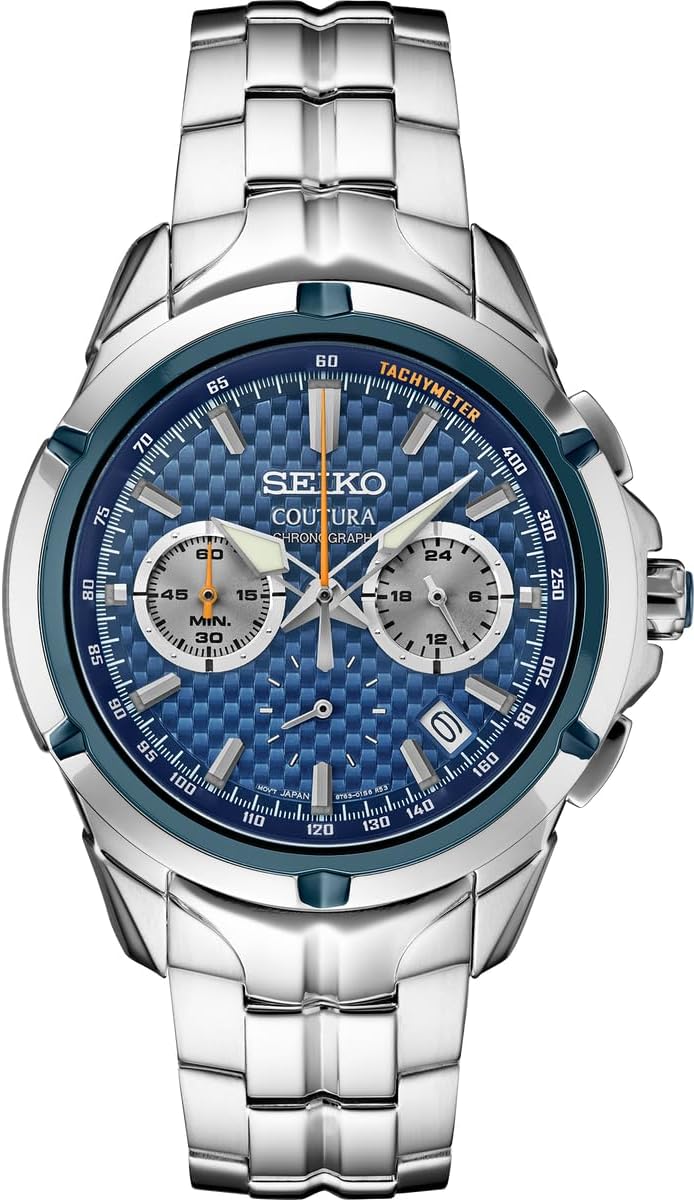 Seiko SSB431 Coutura Chrono Blue Carbon Dial 43 mm Stainless Steel Quartz Men's Watch Specifications: