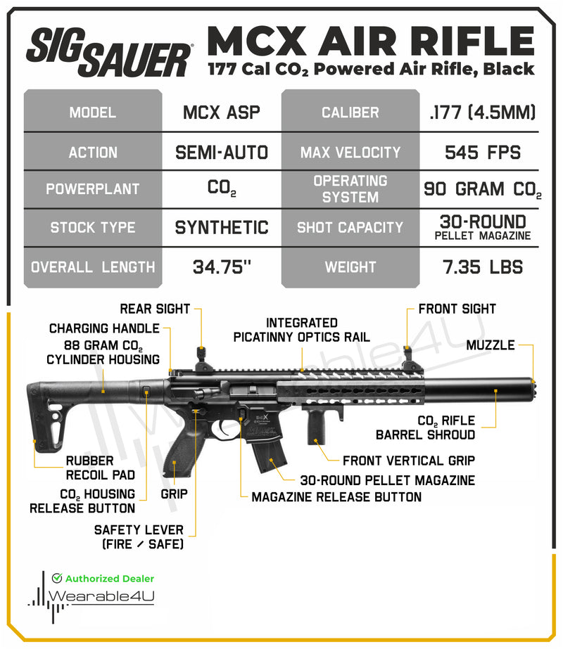 Sig Sauer MCX .177 Caliber CO2 Air Rifle Specifications: