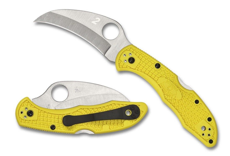 View moreSpyderco's second-generation Tasman Salt 2 is a powerful fusion of a hawkbill blade profile, ultra-corrosion-resistant H-2 blade steel, and an enhanced, injection-molded handle design. The result is an incredibly capable pocket-sized cutting tool that is ideal for anyone who works in or around the water. The radically curved hawkbill blade of the Tasman 2 literally "collects" the material it cuts, drawing it into the concave edge like an animal's claw. This dynamic generates extreme cutting power, especially on fibrous, hard-to-cut materials like netting, line, webbing, and rope. The Tasman Salt 2's high-performance blade is housed in an improved handle design based on Spyderco's best-selling Delica 4. Injection molded from tough, ultra-lightweight fiberglass-reinforced nylon (FRN), it features improved ergonomics, a non-slip Bi-Directional Texturing pattern, and a series of threaded stainless steel anchors for a versatile four-position titanium pocket clip. The handle is also home to a stout back lock mechanism that locks the blade securely open during use. A true pocket powerhouse, the Tasman Salt 2 sets a new standard in mariner's cutting tools.