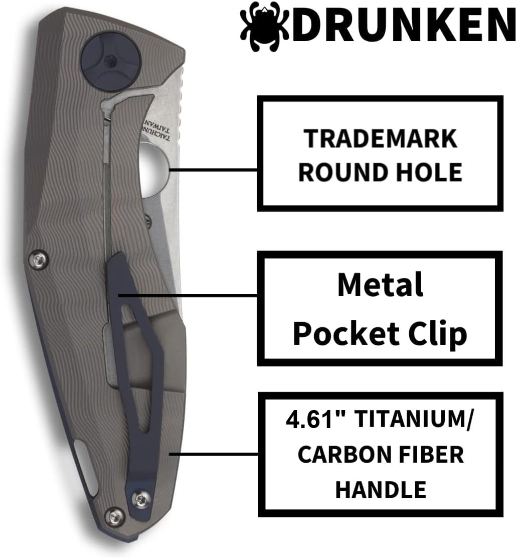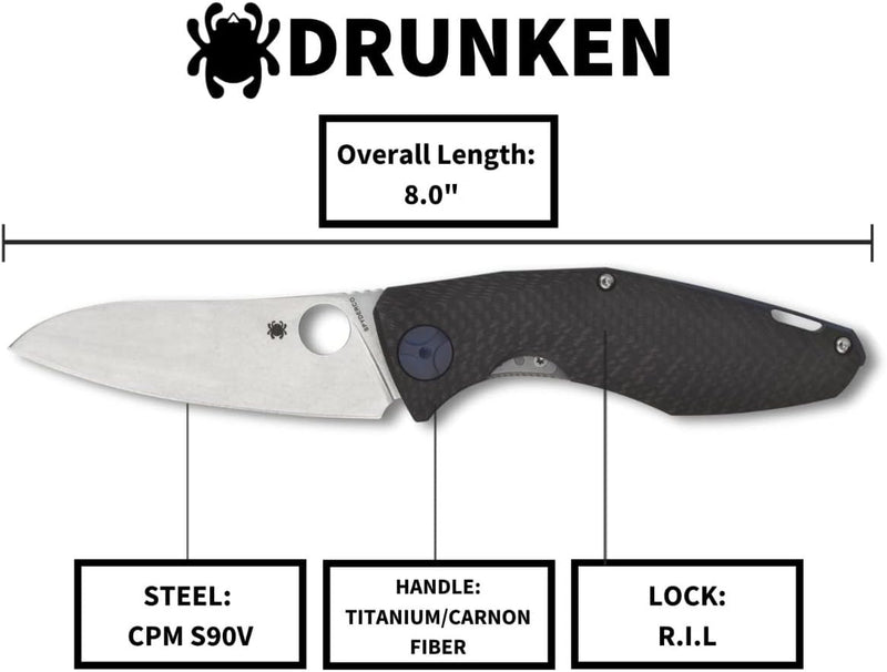Spyderco Drunken Carbon Fiber Titanium Handle 3.45" Plain Edge Premium Pocket Folding Knife (C235CFTIP) Specifications: