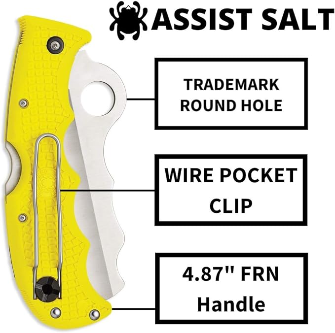 Spyderco Assist Salt FRN Yellow Handle 3.68" SpyderEdge Folding Pocket Knife (C79PSYL) Specifications: