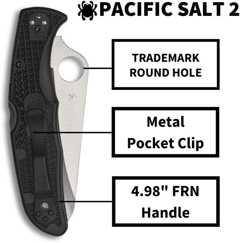 Spyderco Pacific Salt 2 Serrated Edge H-2 3.78" Folding Pocket Knife (C91SBK2) Specifications:
