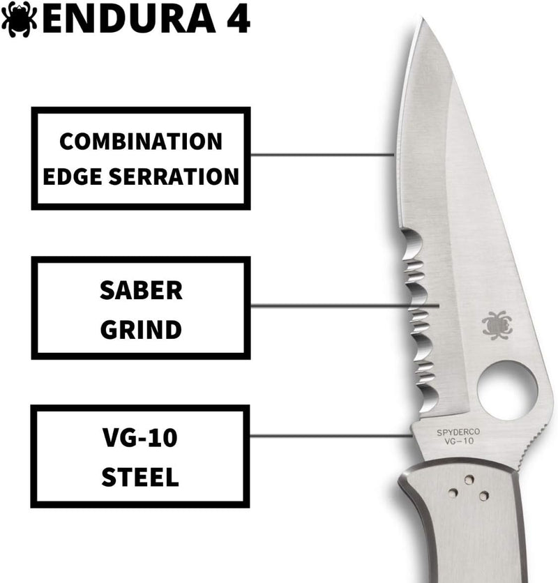Spyderco Endura 4 Combination Edge 3.82" Folding Pocket Knife (C10PS) Specifications:
