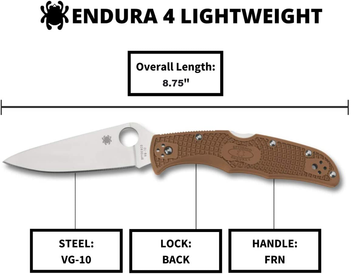 Spyderco Endura 4 Flat Ground Folding Plain Edge Pocket Knife Specifications