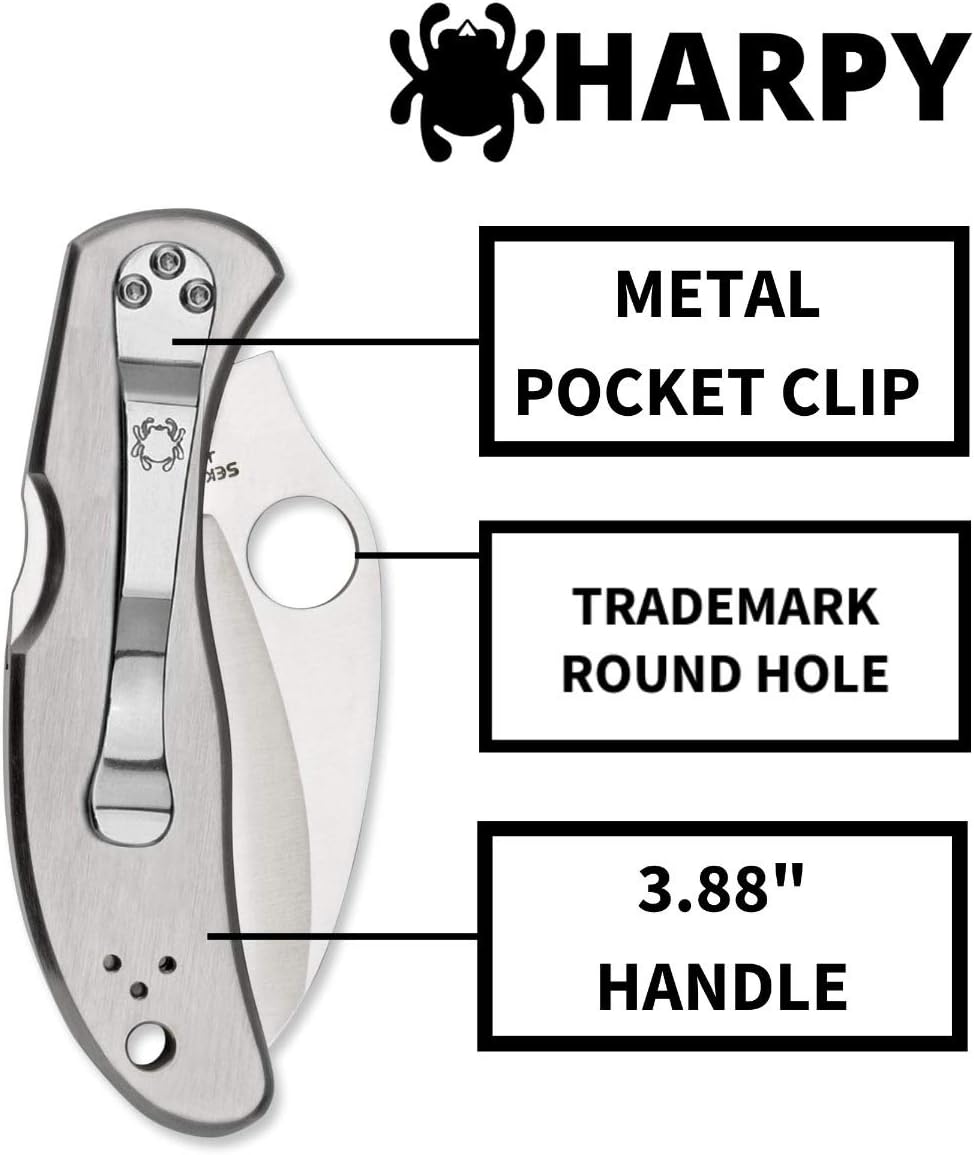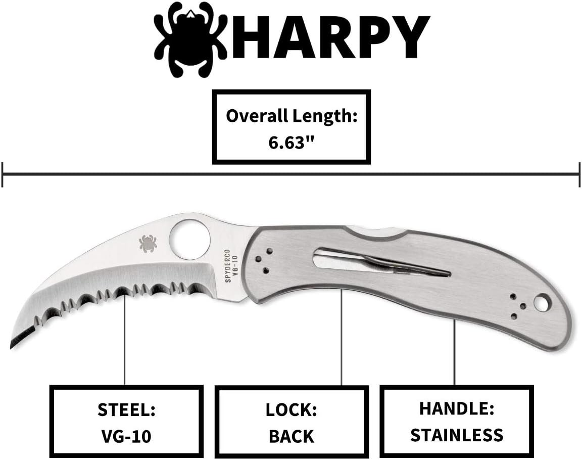 Spyderco Harpy Clipit Stainless 2.75" Serrated Edge Folding Pocket Knife (C08S) Specifications: