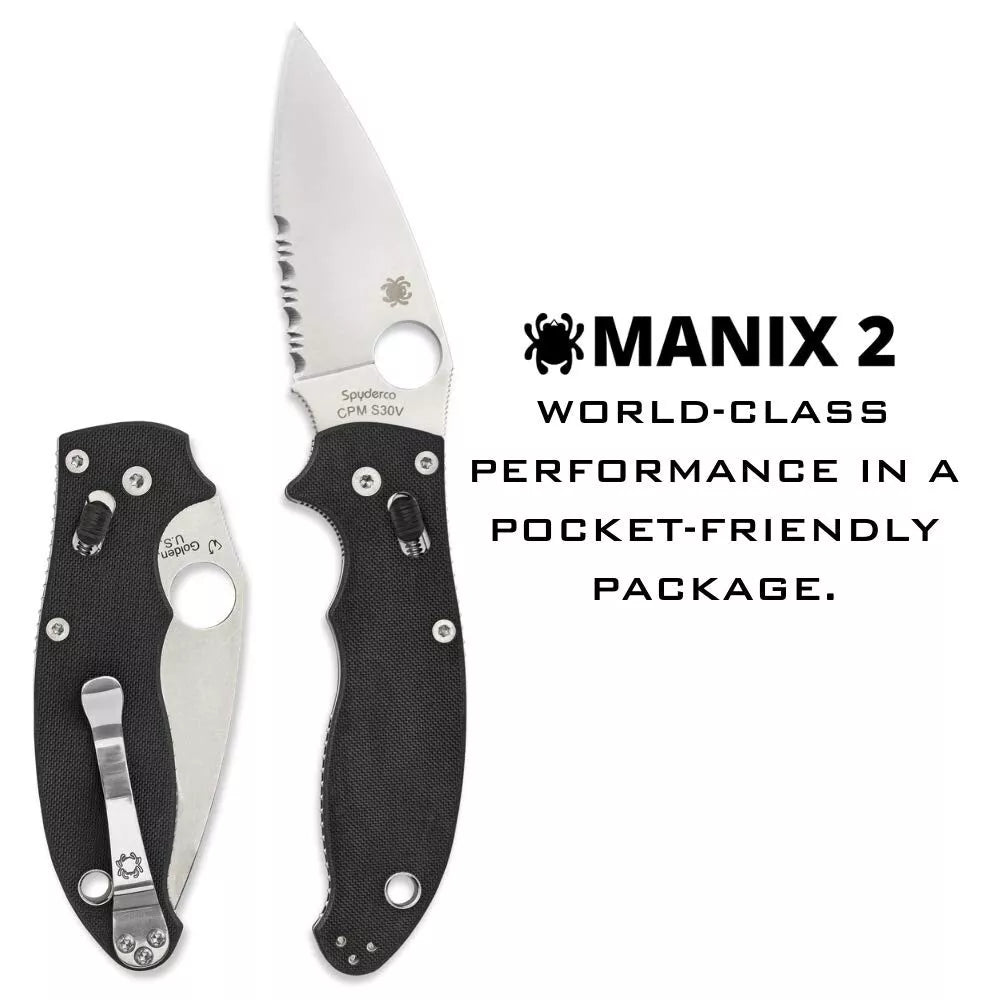 { "@context": "https://schema.org/", "@type": "Product", "name": "Spyderco Manix 2 Black G-10 CombinationEdge 3.37" Folding Pocket Knife (C101GPS2)", "image": "//www.sports-and-gadgets.com/cdn/shop/files/1_7b644715-0354-4319-bca8-e03c8cfc4e14_small.webp?v=1735322697", "description": "