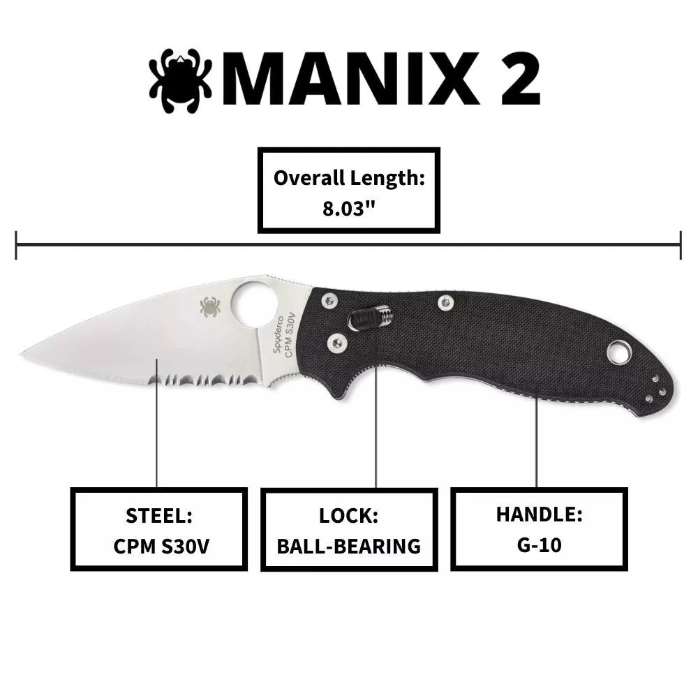 Spyderco Manix 2 Black G-10 CombinationEdge 3.37" Folding Pocket Knife (C101GPS2) Specifications: