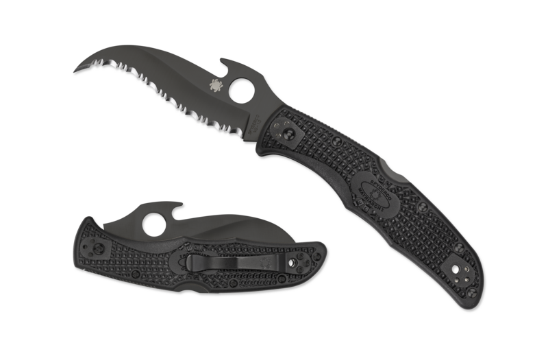 The culmination of years of evolution and refinement, the Spyderco Matriarch 2 with Emerson Opener and Black Blade. It traces its lineage back to the revolutionary Civilian folding knife, which was specifically developed as a survival tool for undercover narcotics officers. The Civilian’s distinctive Reverse “S” blade was later integrated with an injection-molded fiberglass-reinforced-nylon (FRN) handle to create the original Matriarch. The Matriarch 2 combines a VG-10 stainless steel Reverse “S” blade with the lightweight handle of Spyderco’s best-selling Endura 4. Ernest Emerson’s patented Emerson Opening feature supercharges the design with an integral hook on the back of the blade that opens it when the knife is drawn from the pocket. Adding a stealthy black titanium carbonitride (TiCN) coating to the blade and other metal hardware eliminates reflection and makes this knife ideal.