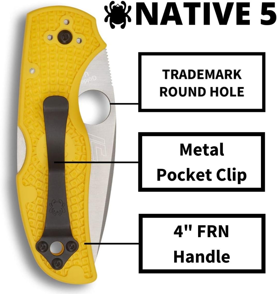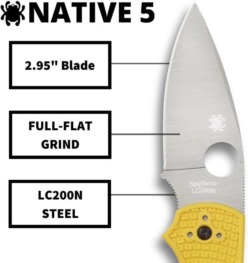 Spyderco Native 5 Salt 2.95" Plain Edge Folding Pocket Knife (C41PYL5) Specifications: