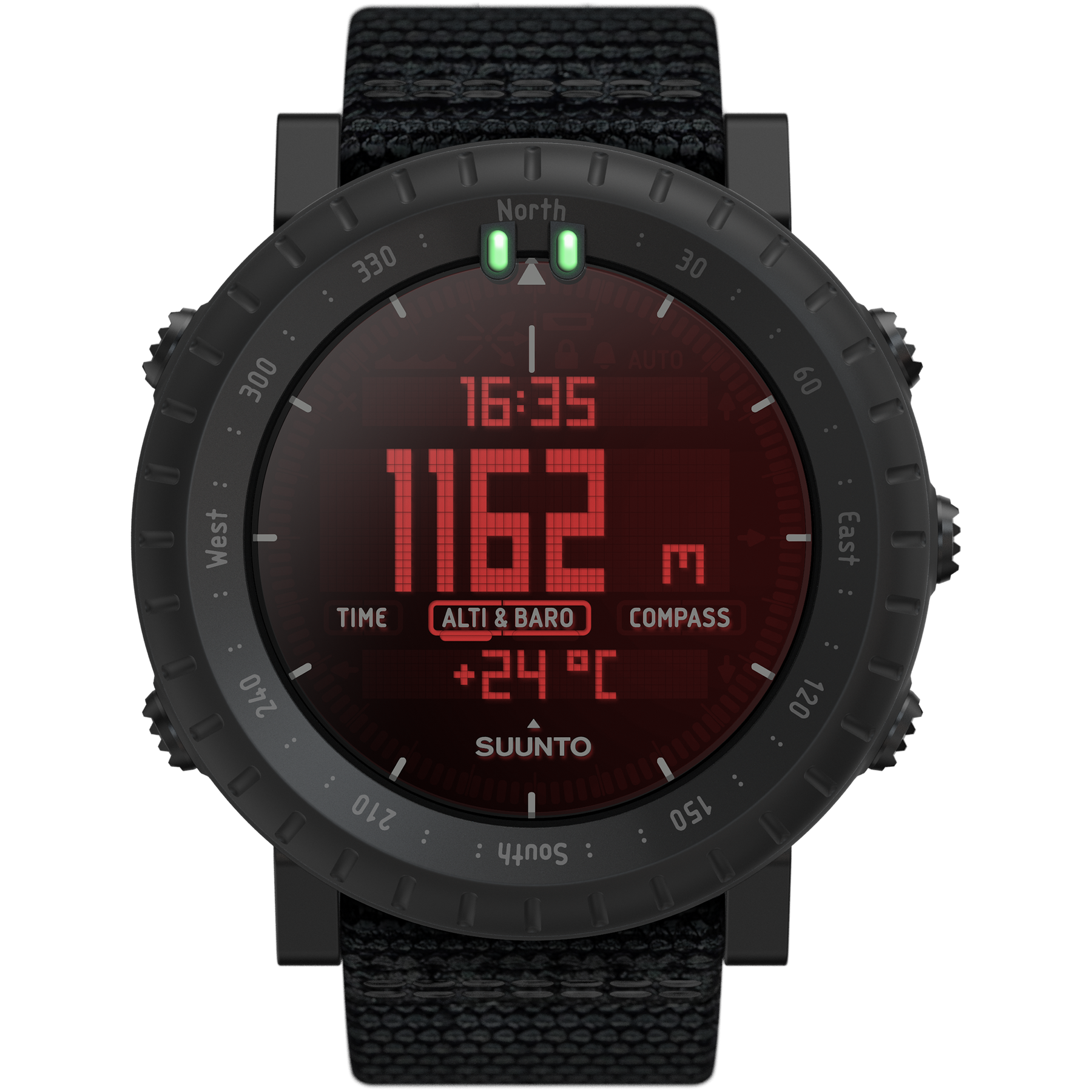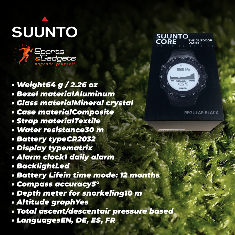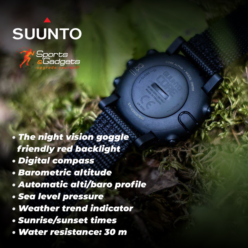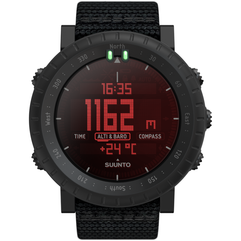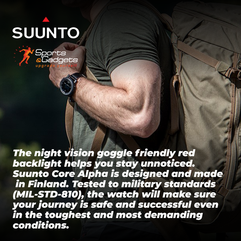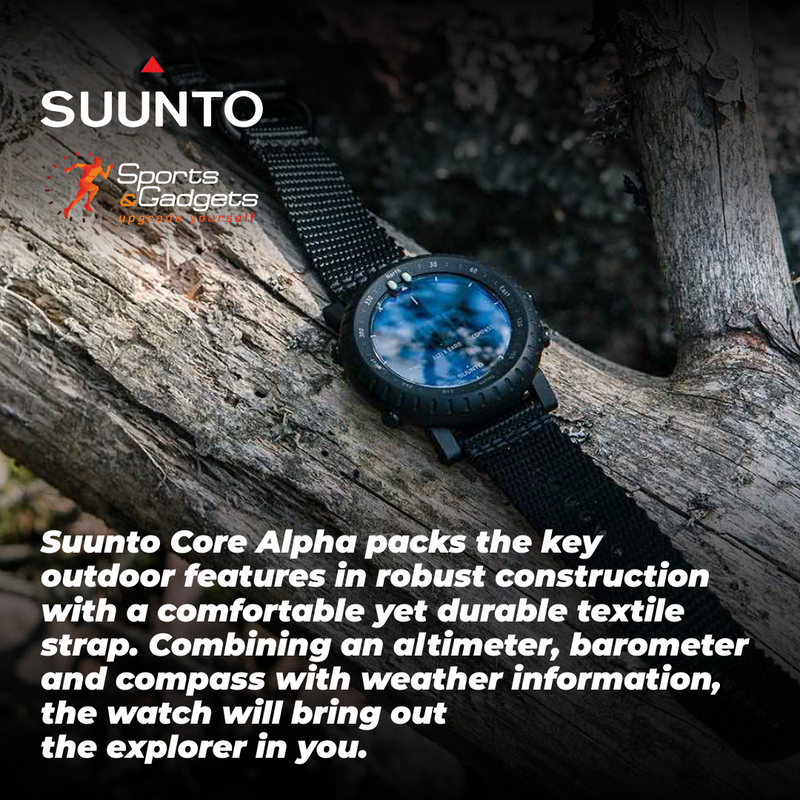 Suunto Core Alpha packs the key outdoor features in robust construction with a comfortable yet durable textile strap. Combining an altimeter, barometer and compass with weather information, the watch will bring out the explorer in you. The night vision goggle friendly red backlight helps you stay unnoticed.Suunto Core Alpha is designed and made in Finland. Tested to military standards (MIL-STD-810), the watch will make sure your journey is safe and successful even in the toughest and most demanding conditions.