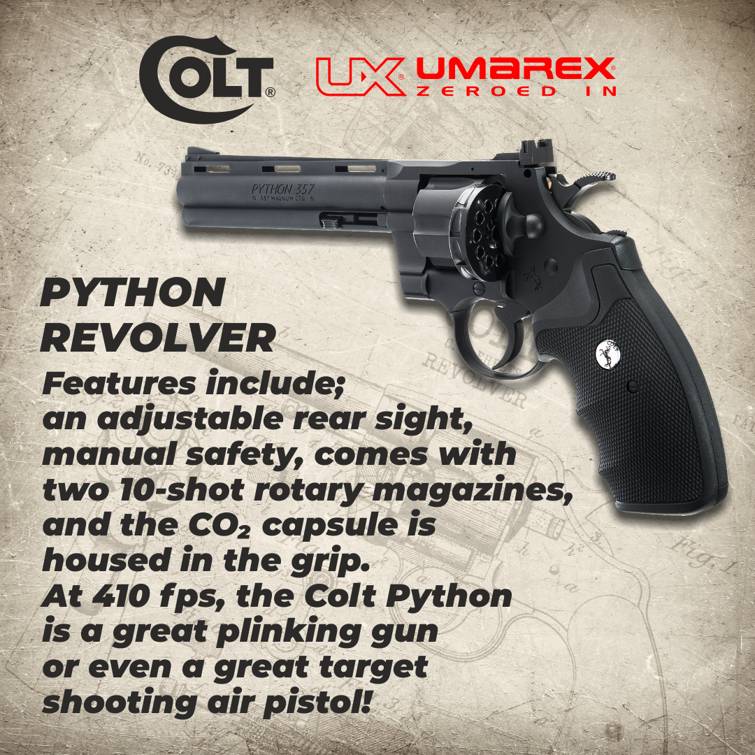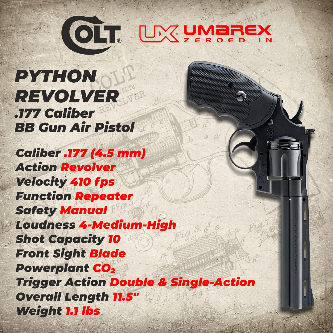 Colt Python Revolver .177 Caliber BB Gun Air Pistol Specifications: