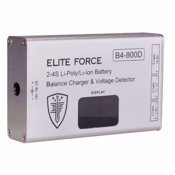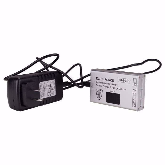 Every airsoft owner needs this pinnacle of charging convenience and safety - the Elite Force 2-4S Li-Poly/Li-Ion SMART Battery Balance Charger. Designed to optimize the charging process for lithium polymer (Li-Poly) and lithium-ion (Li-Ion) batteries, this cutting-edge charger ensures peak performance and longevity for your airsoft batteries. Charge up your AEG's batteries quickly and safely with the Elite Fore Balance Charger and Voltage Detector. This charger can handle 7.4v, 11.1v, and 14.8v LiPo and Li-Ion batteries and features a digital readout. An 11.1v battery will fully charge in 1.5 hours. Just remember, it’s still the best idea to place your batteries in a battery charging bag every time you charge them. With its advanced balance charging technology, this charger actively monitors and balances each cell within your airsoft battery pack, ensuring that they all charge evenly and to their maximum capacity. This not only enhances the overall lifespan of your batteries but also maximizes their performance and reliability, delivering consistent airsoft power when you need it most. Equipped with a user-friendly interface, this charger offers intuitive controls and a clear, easy-to-read display screen, allowing you to effortlessly monitor the charging process. Whether you're a seasoned airsoft hobbyist or a casual air softer, you'll appreciate the simplicity and efficiency of this battery charger. This Elite Force Airsoft SMART battery charger has built-in protections against overcharging, over-discharging, short circuits, and reverse polarity to ensure that your batteries are charged safely and reliably throughout the lifespan of your airsoft batteries. Additionally, the charger's robust construction and quality components guarantee durability and long-term performance, so you can rely on it for all your charging needs. Compact and portable, this charger is perfect for use at home, in the workshop, or on the go. This versatile charger is up to the task. Experience the ultimate in charging convenience and peace of mind with the Li-Poly/Li-Ion Battery Balance Charger. Say goodbye to uneven charging and premature battery failure - and hello to reliable power whenever you need it.