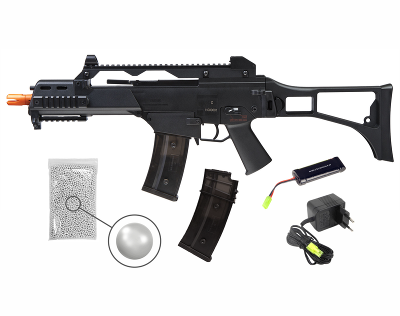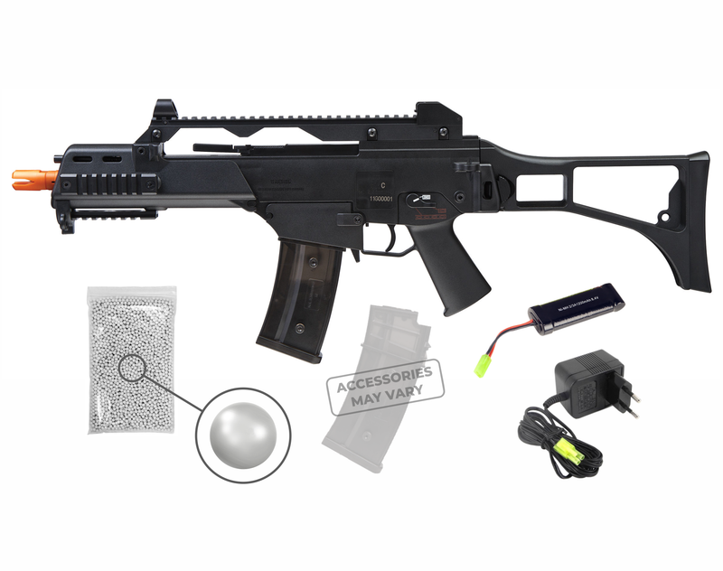 IN THE BOX: 1x Elite Force HK G36C AEG, 1x 400rds Mag, 1x Battery, 1x Charger, 1x Pack of 1000 6mm (.22) BBs