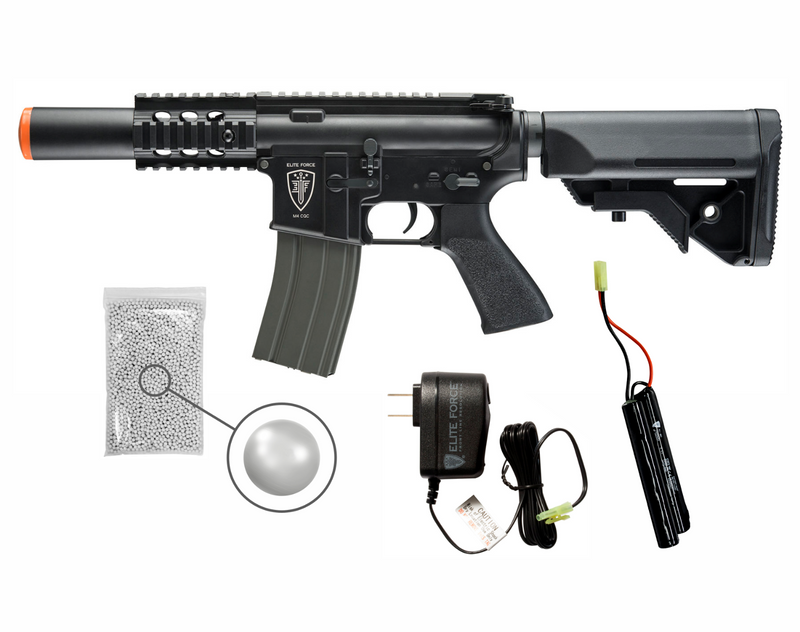 If you're looking for the ultimate close-quarter M4 AEG, here it is. The Elite Force M4 CQC is not "just another M4" as many might think. For example, how about reinforced internal parts or redesigned external furniture like the 6-position crane stock with a unique simple-access battery compartment? Not only does our M4 CQB come with a micro-switch trigger inside for snappy trigger response, but the extremely compact size of the rifle itself allows to the shooter to move rapidly through tight areas in order to achieve the objective and take down any targets along the way. This particular model has gone through seven (yes, 7) generations of improvements both inside and out.