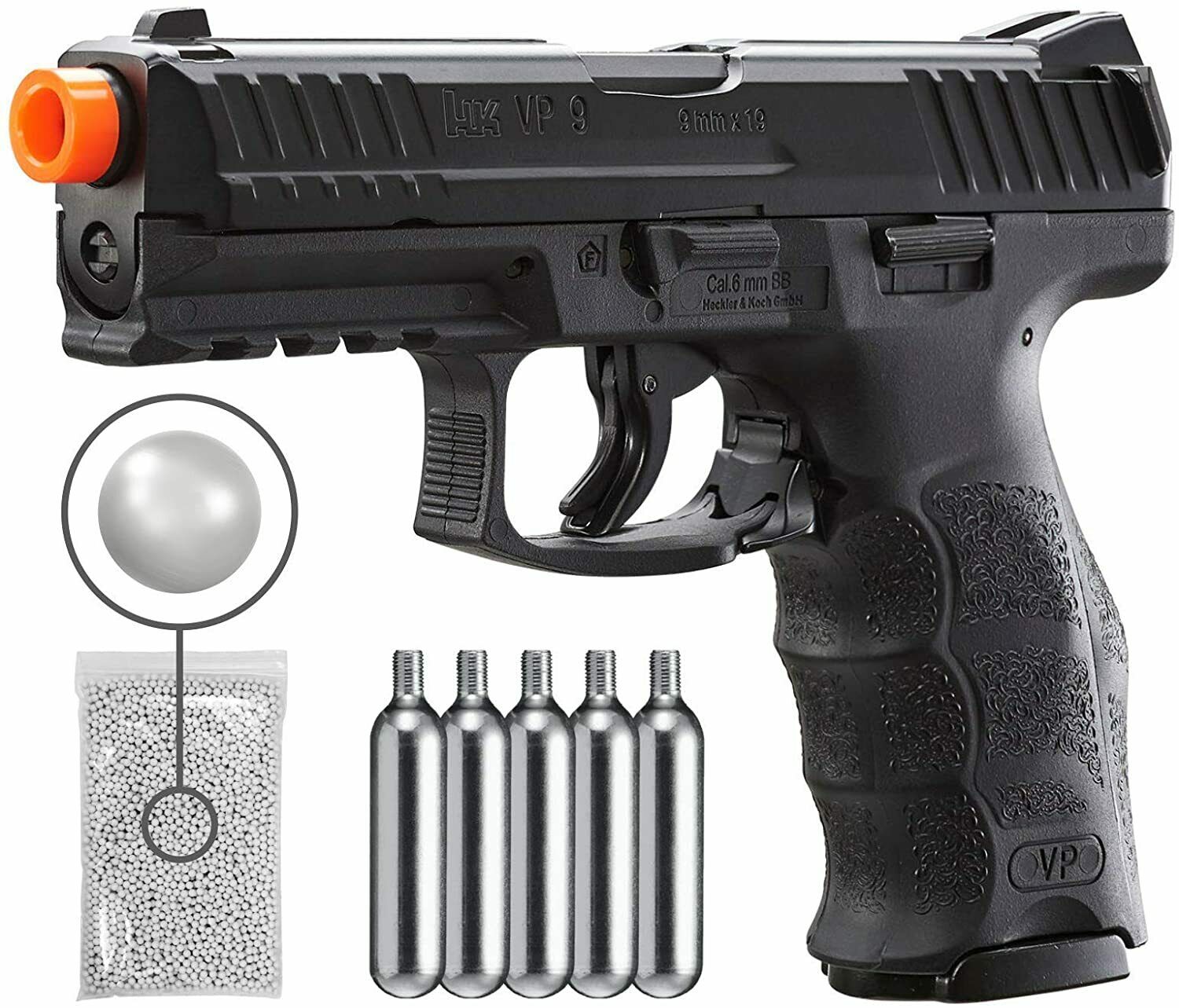 Just like the actual firearm, the airsoft VP9 features an all-metal slide on a polymer body. This highly-ergonomic polymer body features stippling on the grip that contours naturally to the palm and fingers. Load up a single 12-gram CO2 cartridge, and blast away its 1x14-round magazine at 315 fps. Powered by the CO2. As a result, the trigger loads your next round and not the slide. While this may sound like a drawback, this makes firing repeating shots fast and easy.