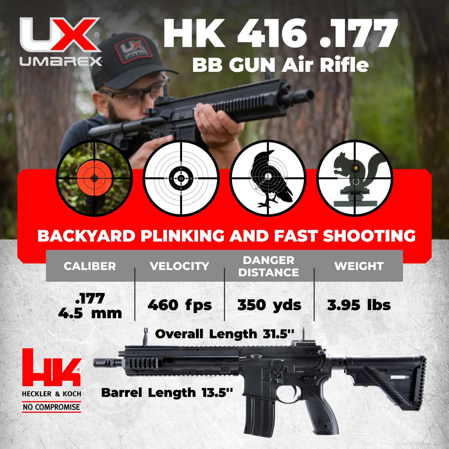 Umarex HK Heckler & Koch HK416 .177 Caliber CO2 Air Rifle Specifications: