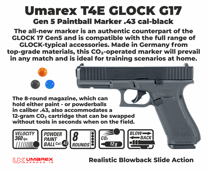 Umarex T4E Glock G17 Gen 5 Paintball Marker .43 Сal Specifications: