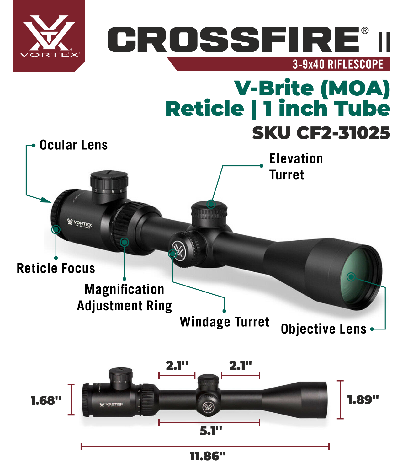 Vortex Optics Crossfire II 3-9x40 SFP Riflescope V-Brite Illuminated MOA Specifications