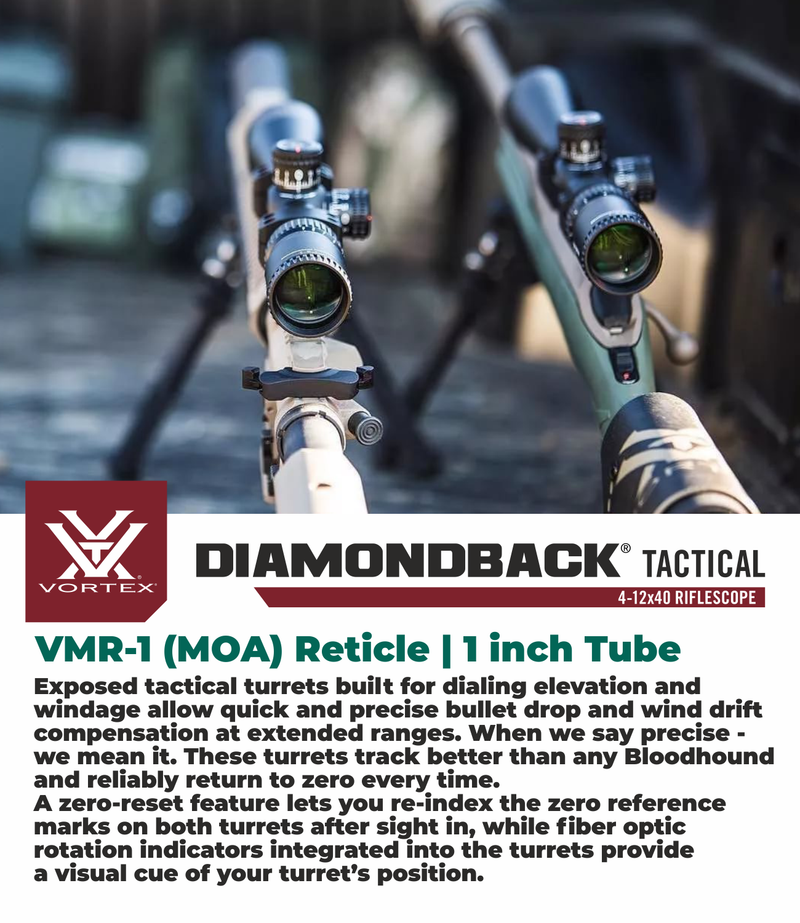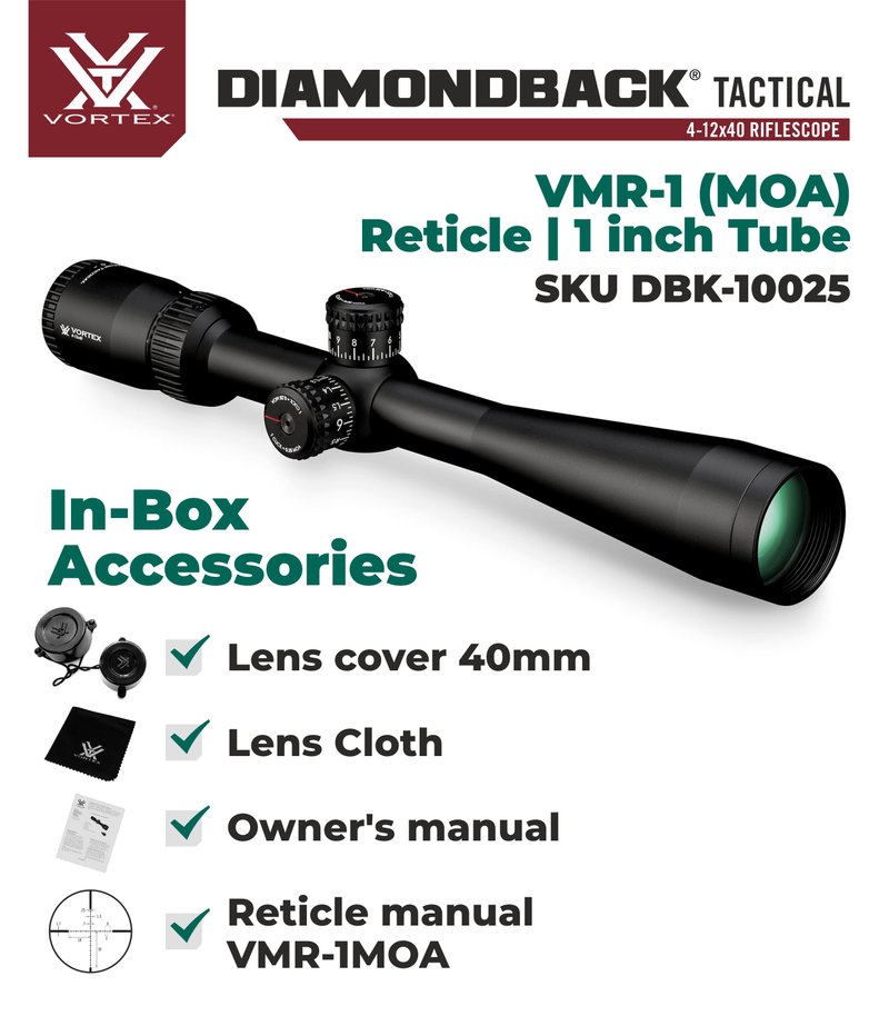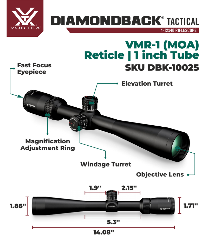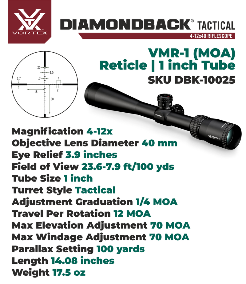 Vortex Optics Diamondback 4-12x40 SFP Riflescope (DBK-10025) Specifications: