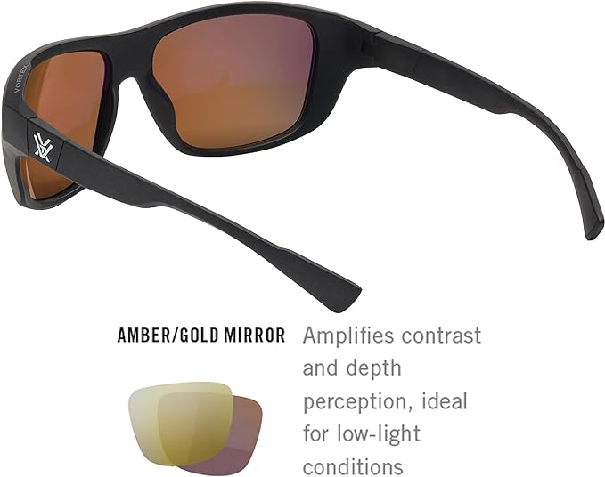 Vortex Optics Jackal Sunglasses UV Protection, Polarized, Ballistic Rated, Black/Amber - Gold Mirror (EJA-BKA-GL) Specifications: