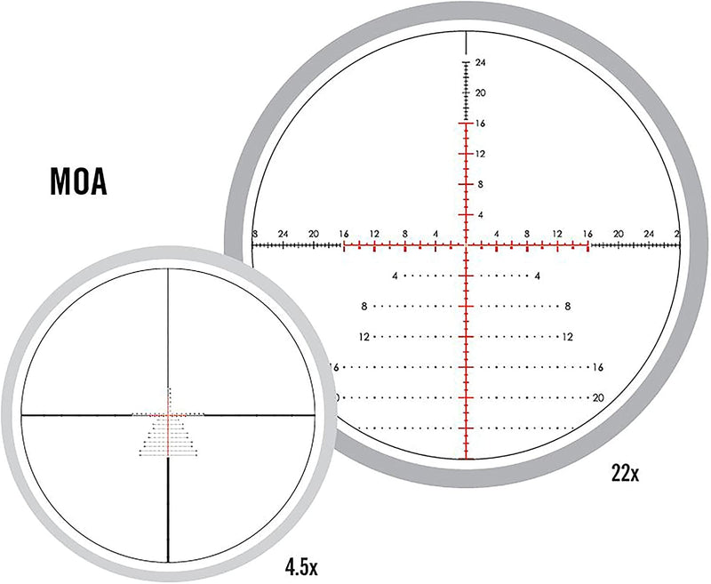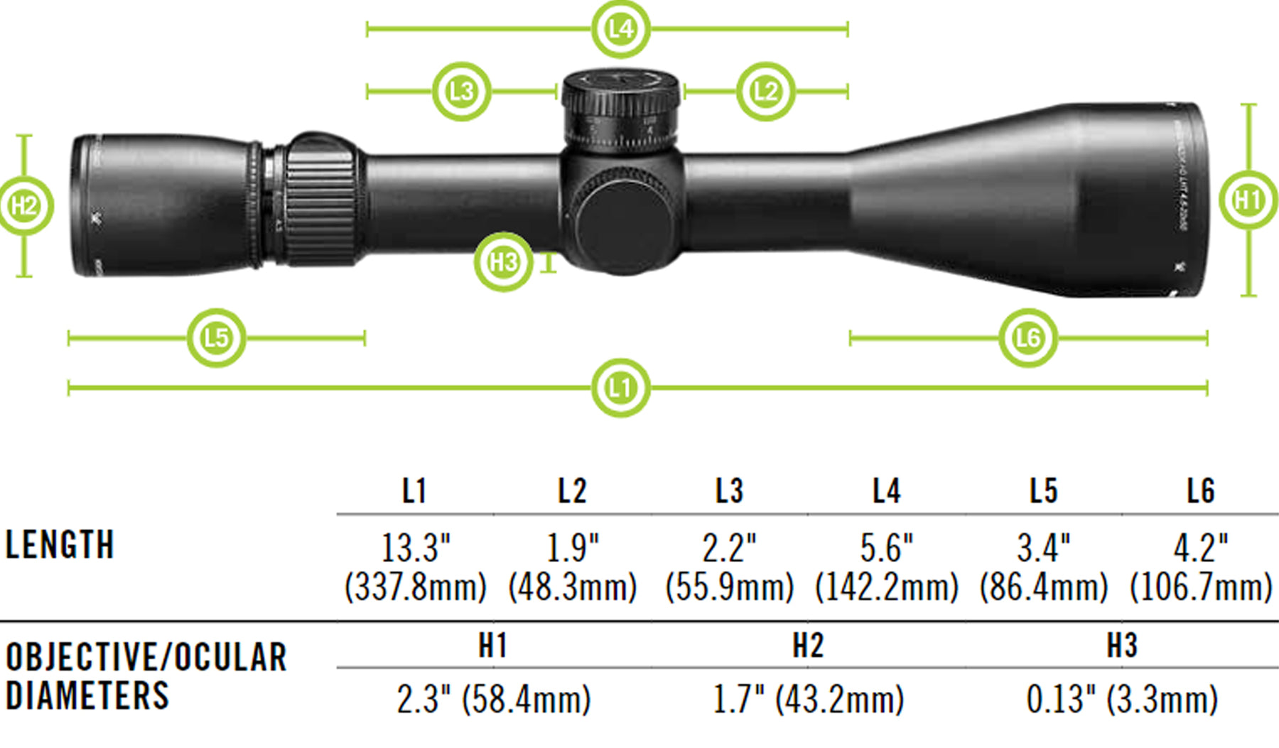 The first focal plane XLR-2 reticle is optimized for long range. The scale of the reticle remains in proportion to the zoomed image making for accurate holdovers and ranging at all magnifications.