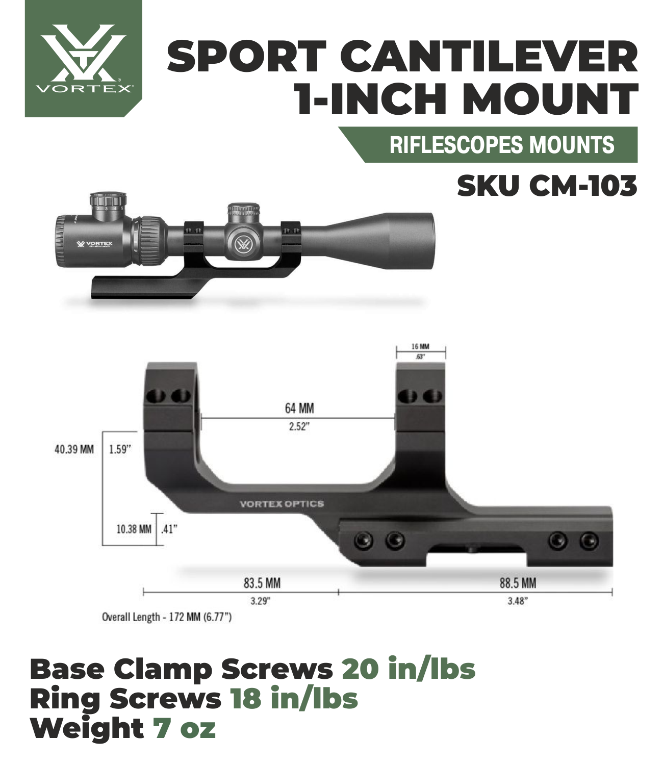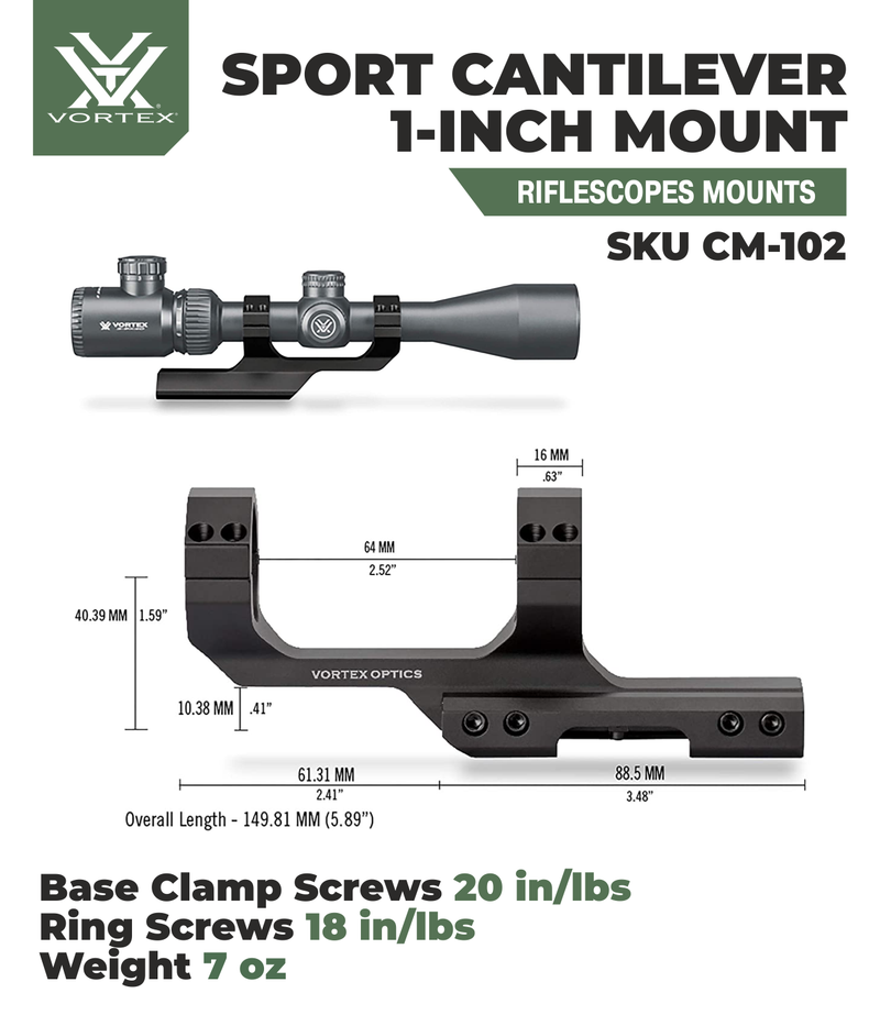 - Use this cantilever mount for mounting 1-inch telescopic sights