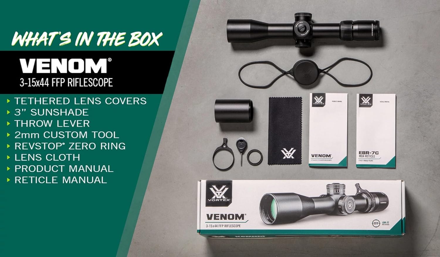 Vortex Optics Venom 3-15x44 FFP EBR-7C MOA Riflescope (VEN-31501) Specifications:
