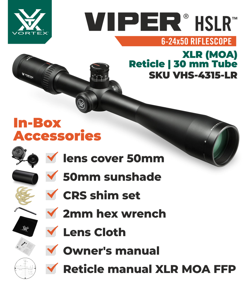 Vortex Optics Viper HSLR 6-24X50 XLR (MOA) FFP Riflescope Specifications